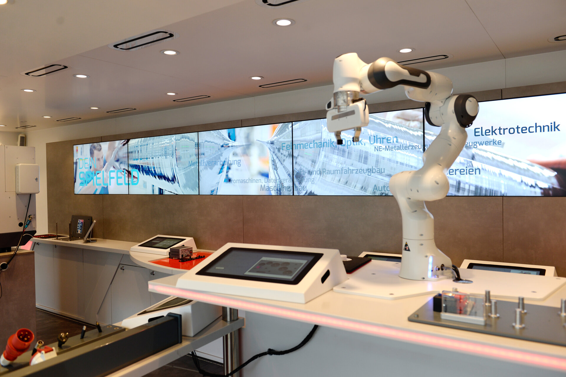 The two-storey M+E InfoTruck offers 80 square meters of countless alternatives for experiencing the “fascination of technology” in a practical and intuitive way. There are many hands-on and experiment stations on the lower floor. There, for example, the students can program a CNC machine and then mill a workpiece or solve various tasks with different circuits at a workstation with many electrical modules. The second floor of the truck focuses on career education, which is displayed on a large touchscreen. Through the presentation of a MAHA trainee, the students were also informed about the profession of industrial clerk, about available internships and the selection of applicants in the company. During a tour of the training workshop, the students were also able to find out about the training and work situation and talk to our trainees. Many students were enthusiastic about the diversity of the metal and electrical industry and the training opportunities at MAHA.