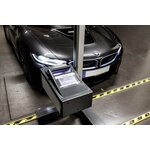 Avec le réglage orthogonal de la surface de projection dans l’appareil par rapport à l’axe longitudinal du véhicule, la variante à unité d’alignement laser offre la meilleure efficacité possible. Le rayon lumineux est simplement projeté sur deux points symétriques sur la carrosserie, afin que l’alignement exact de l’appareil de mesure puisse être vérifié en un clin d'œil.