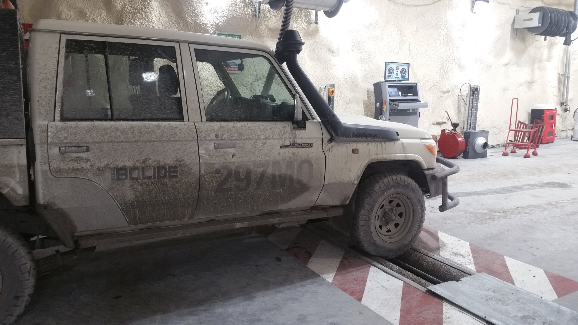 En 2016, l’entreprise Boliden a approuvé l’achat d’un nouveau banc d’essai de freinage à rouleaux (MBT 2250 avec RS 5) auprès de MAHA Ireland afin de contrôler sa flotte de véhicules tout-terrain utilisée dans la mine. Un banc d’essai de freinage à une telle profondeur sous terre doit être une vision peu commune.