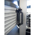 - Équipement de série avec des roulettes en plastique sur roulements à aiguilles. galets demi-ronds pour une utilisation sur nos rails optionnels rails de roulement demi-rond en acier inoxydable