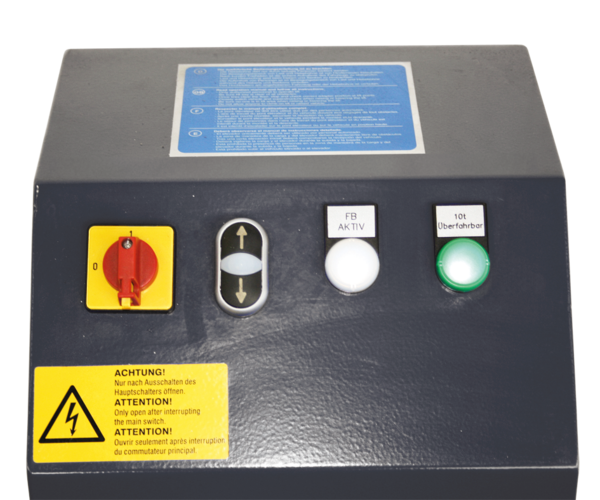 - Unité de commande supplémentaire pouvant être montée à l'intérieur de la fosse avec un interrupteur de sécurité et un interrupteur de descente d'urgence