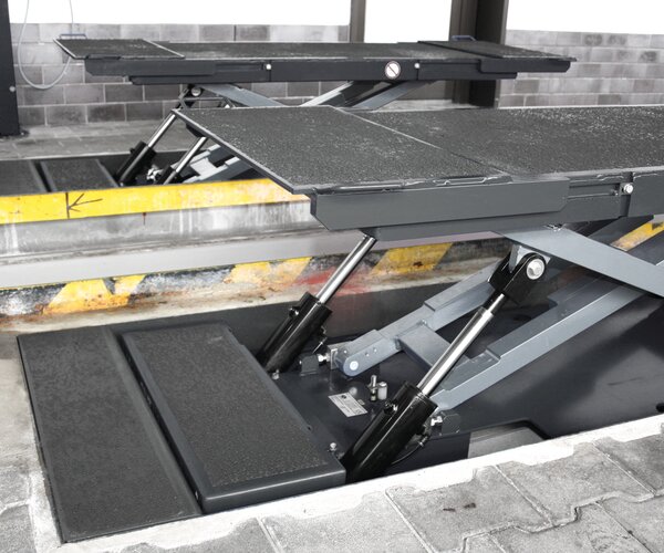 - Montage encastré sur fosse, pas de liaison mécanique entre les deux bras de ciseaux