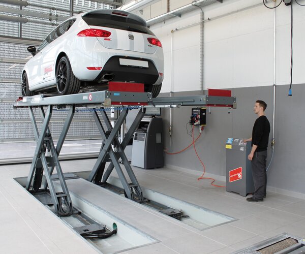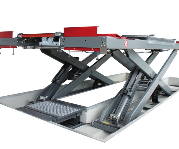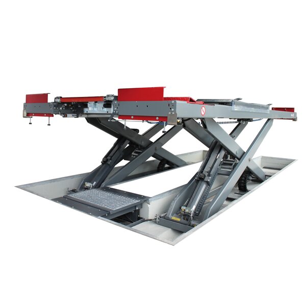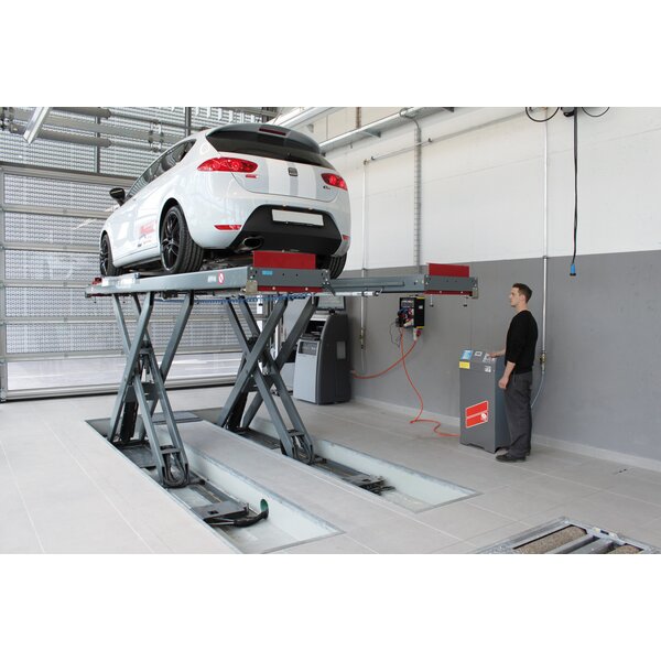 - Pont élévateur à ciseaux pour montage encastré pour un franchissement facile du pont élévateur, sans modules supplémentaires dans la zone de levage