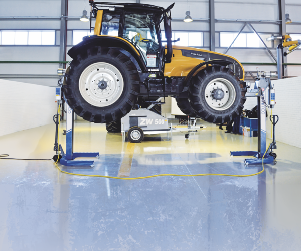 - Spécialement pour l'élévation de tracteurs à 2 traverses avec kit adaptateur (utilisable seulement pourles tracteurs équipés du rail C correspondant)