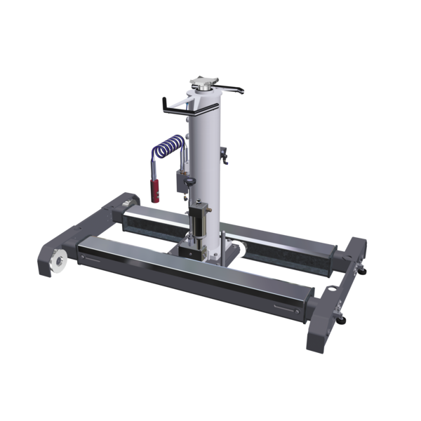 - Telescopic carriage for precision adjustment of pit jack lane width to fit the rails in the work pit