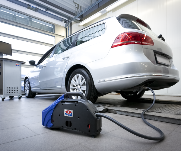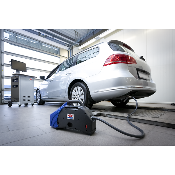 - Contrôle rapide et aisé et test d'opacité des fumées d'échappement/de concentration en particules dans le cadre d'une procédure à flux partiel en accélération libre ou sous sollicitation du moteur